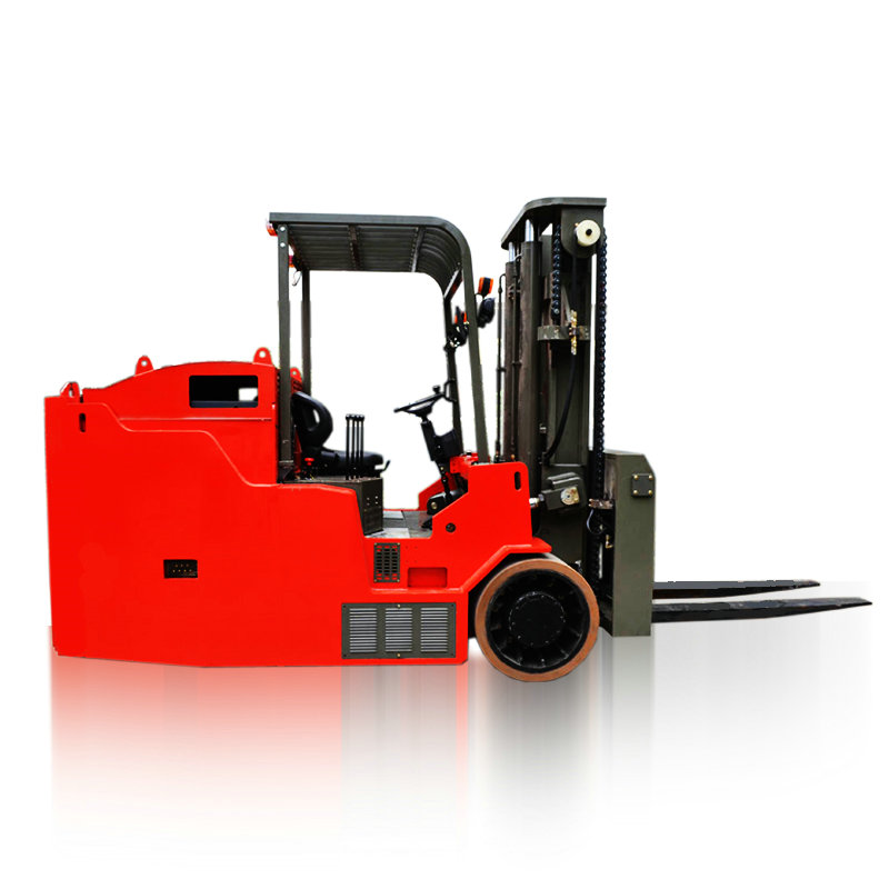 據(jù)悉,該型號蓄電池平衡重式叉車最大起身高度為3000MM,最大起重重量達(dá)到13.5噸,與同噸位內(nèi)燃平衡重相比,具有軸距小、轉(zhuǎn)彎半徑小、低重心、具有極佳的轉(zhuǎn)向穩(wěn)定性;雙泵合流液壓系統(tǒng),能量消耗小,維護(hù)成本低,自動(dòng)無級調(diào)速油泵驅(qū)動(dòng)控制系統(tǒng),更節(jié)能、噪音小、延長電機(jī)壽命;自主研發(fā)的大噸位轉(zhuǎn)向橋機(jī)構(gòu),承載力大,轉(zhuǎn)向更輕松;采用高性能聚胺脂材料特制車輪,承載力大,變形量小。