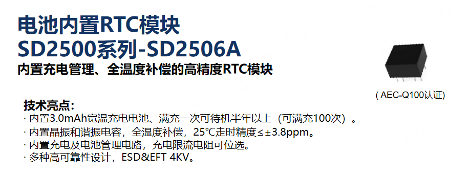 SD2506A則是一款極具特色的創(chuàng)新性RTC產(chǎn)品,是興威帆深入了解客戶(hù)的痛點(diǎn)和需求后,推出的高精度電池內(nèi)置RTC模塊,該產(chǎn)品主打BMS市場(chǎng),一經(jīng)上市并獲得了眾多車(chē)企的青睞。