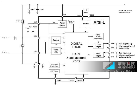 A2SI-Lite (A2SI-L) is a monolithic CMOS integrated circuit certified for AS-i (Actuator Sensor-interface) networks. AS-i networks are intended for industrial automation. This integrated circuit is dedicated to be used as simplified interface IC for key control panels, simple sensors and small actuators.